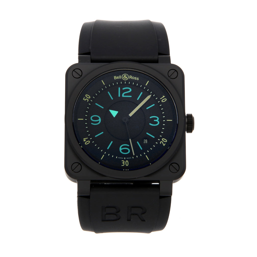 Mens BELL AND ROSS : Black dial ceramic case automatic movement 100m Water Resistant without screw in crown with rubber strap