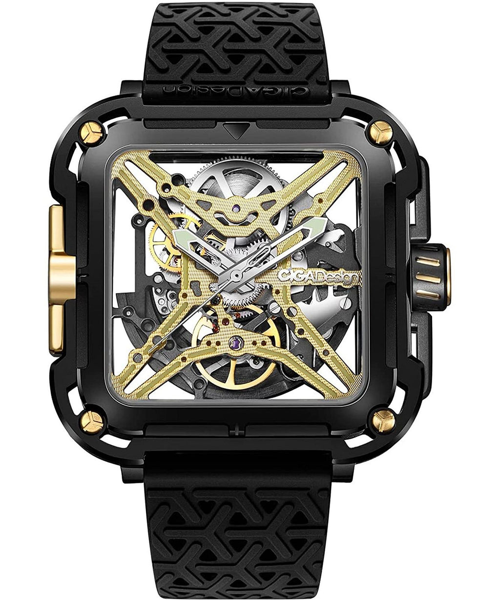 Ciga Design, Mens, Skeleton Dial, Stainless Steel Case, With Rubber Strap, Mechanical Movement, 30M Water Resistant, Without Screw In Crown