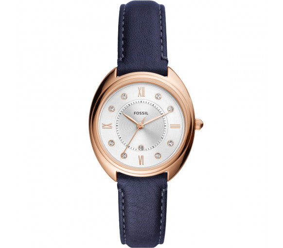 Fossil, Ladies, White Dial, Rose Gold Plated Case, With Leather Strap, Quartz Movement, 30M Water Resistant, Without Screw In Crown