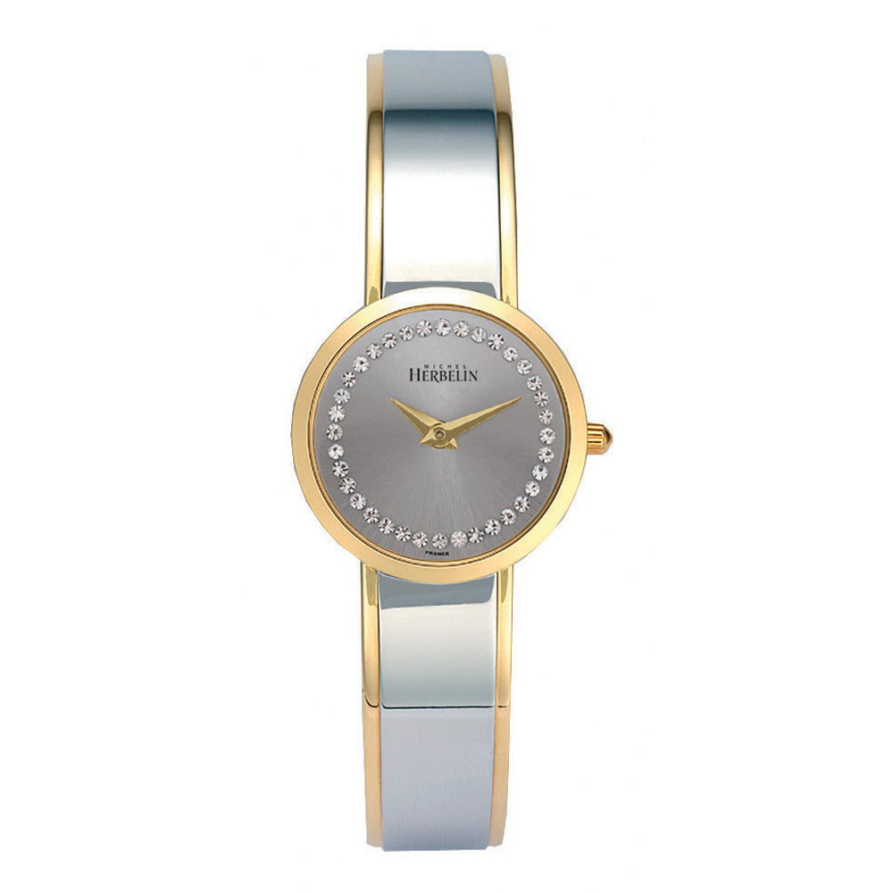 Michel Herbelin, Ladies, Silver Dial, Gold Plated Case, With Two Tone Strap, Quartz Movement, Water Resistant Water Resistant, Without Screw In Crown