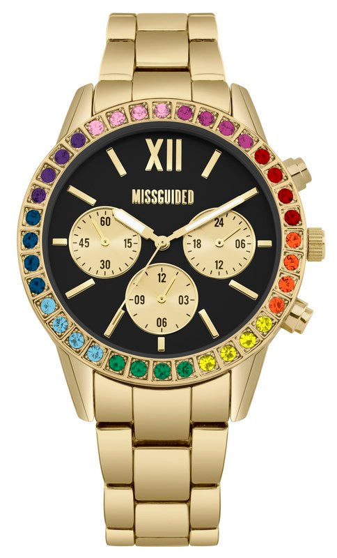 Missguided, Ladies, Black Dial, Gold Plated Case, With Gold Plated Strap, Quartz Movement, 30M Water Resistant, Without Screw In Crown